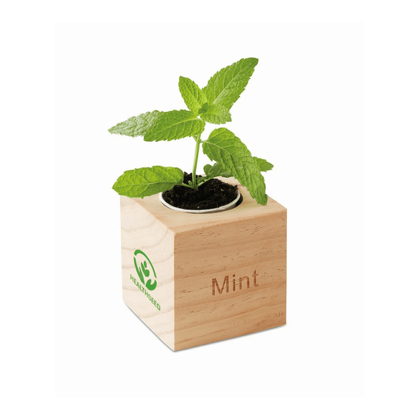 Herb pot wood "MINT" Customised with your design