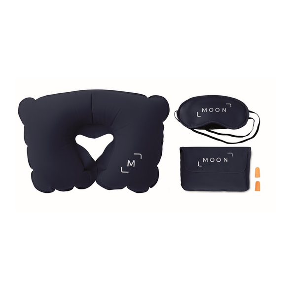 Setti tyynyllä, silmänaamiolla, tulpilla