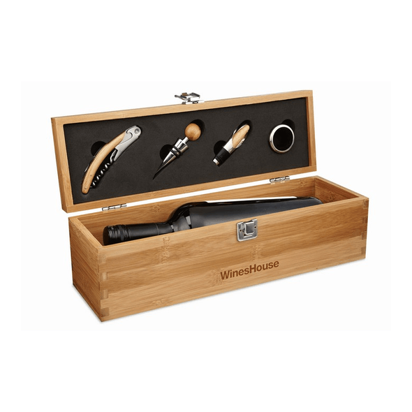 Viinisetti bambulaatikossa